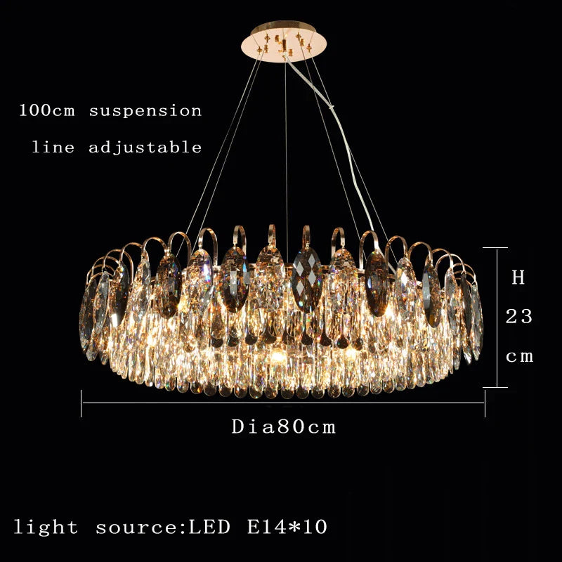 Elevate the ambiance of your living spaces with our New Modern Crystal Chandelier. This exquisite lighting fixture embodies modern luxury with a round gold design and energy-efficient LED illumination. Ideal for living rooms, it stands as an elegant and stylish lighting solution that enhances the overall beauty and sophistication of your home decor. Illuminate your space with the warm and inviting glow of this luxurious chandelier.