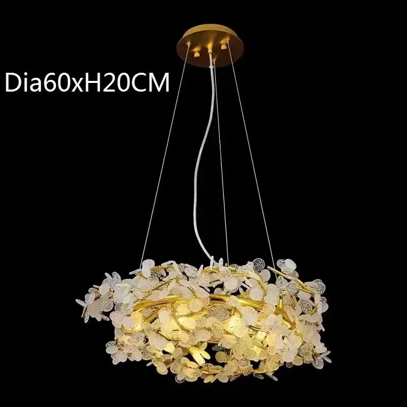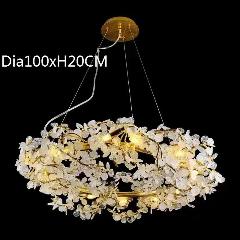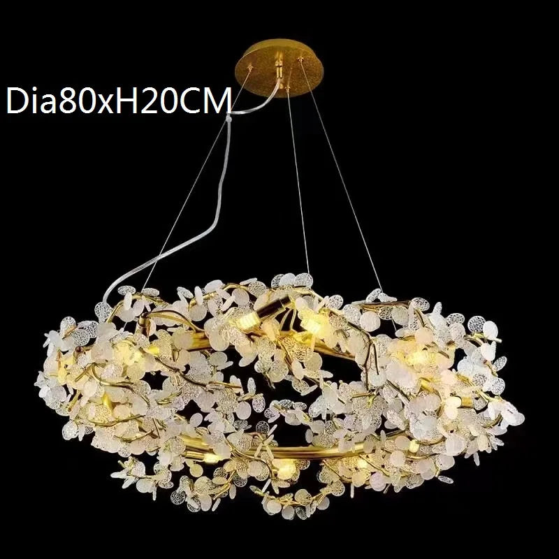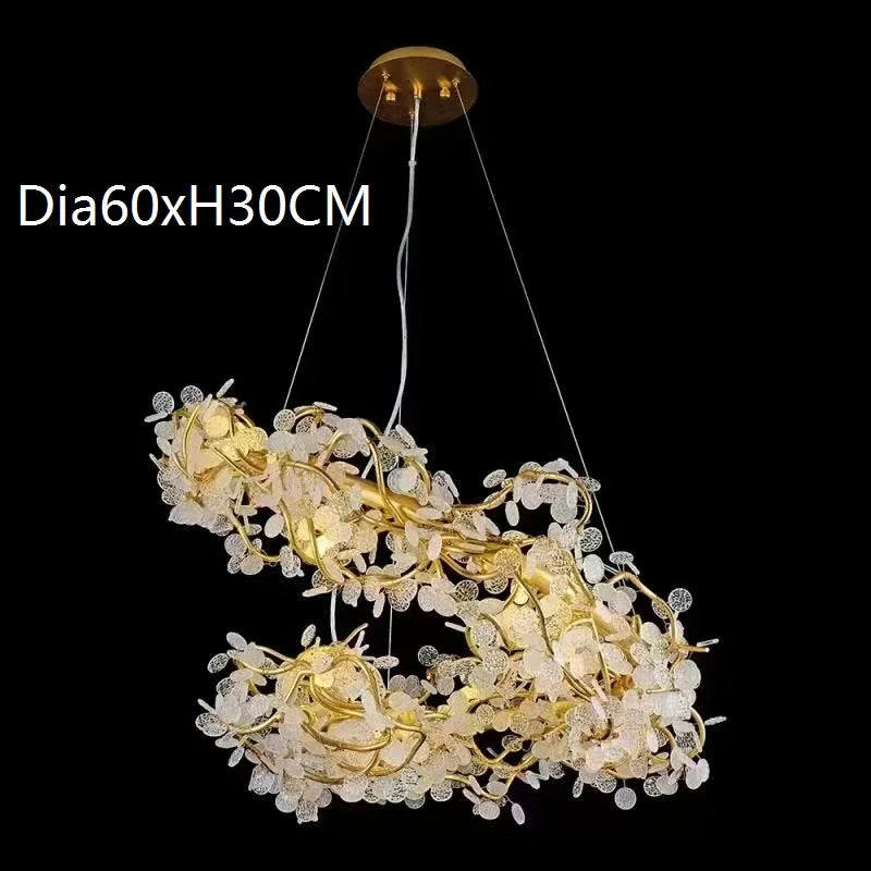 Elevate your interior with the Circle Branch Crystal Chandelier, an epitome of luxury and sophistication, meticulously designed to enhance your living rooms, restaurants, luxury hotels, and decorative lighting needs. This chandelier features an exquisite circular branch design adorned with dazzling crystal elements, creating an ambiance of opulent grandeur. Crafted with precision and equipped with energy-efficient LED lighting, it offers both style and functionality, making it an ideal addition to your decorative lighting fixtures.