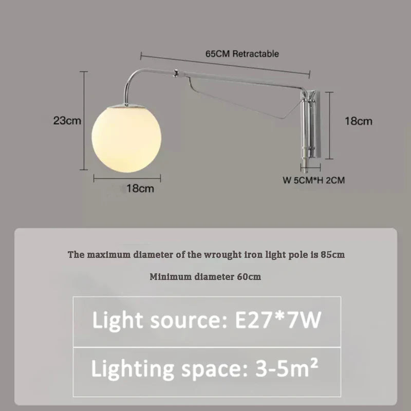 Rocker Arm Wall Lamp - Modern Bedroom and Living Room Reading Light with Milky White Glass Bubble Lampshade