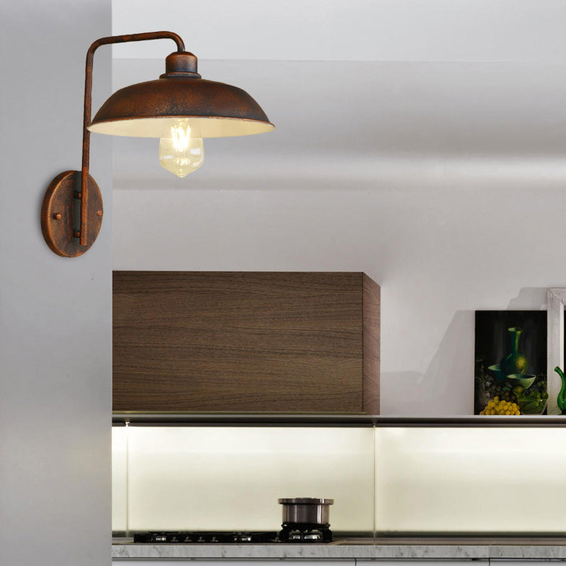 Antique Style 1-Light Barn Wall Sconce is a perfect blend of rustic charm and industrial elegance, ideal for adding a touch of class to your hallway or any space in need of stylish lighting. This wall light features a unique antique look with a sophisticated black finish complemented by rust highlights, creating a vintage vibe that is both chic and timeless.