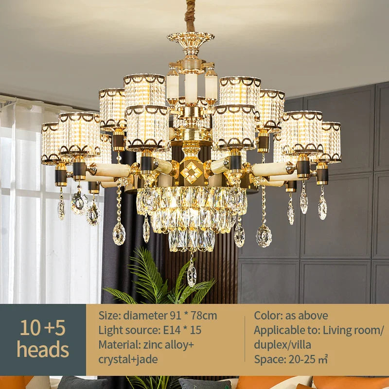 Élégance du cristal : Orné d'éléments en cristal, ce lustre respire l'opulence et la sophistication, ce qui en fait un ajout étonnant à n'importe quelle pièce.