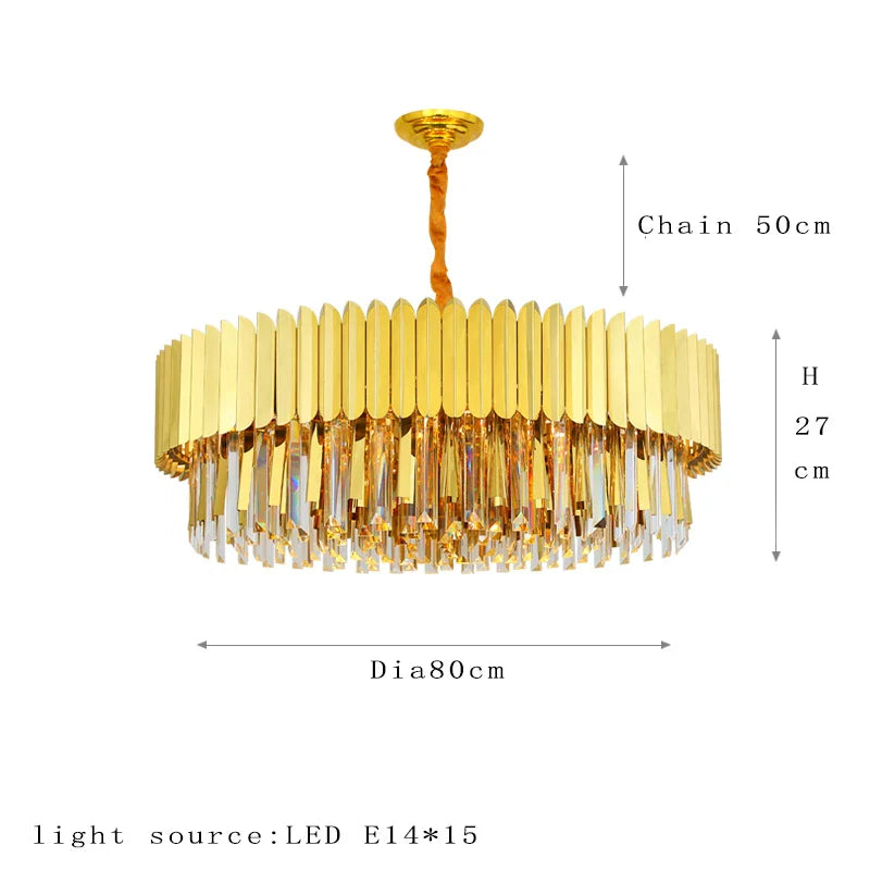 Acier inoxydable doré : La construction en acier inoxydable doré du lustre respire le luxe moderne, ce qui en fait une pièce maîtresse d'élégance dans n'importe quelle pièce.