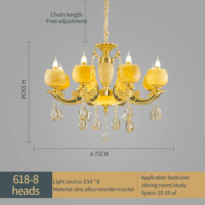 Lustre en cristal de jade de style européen - Éclairage de luxe avec des accents de marbre naturel pour les salles à manger, les chambres et les espaces de vie