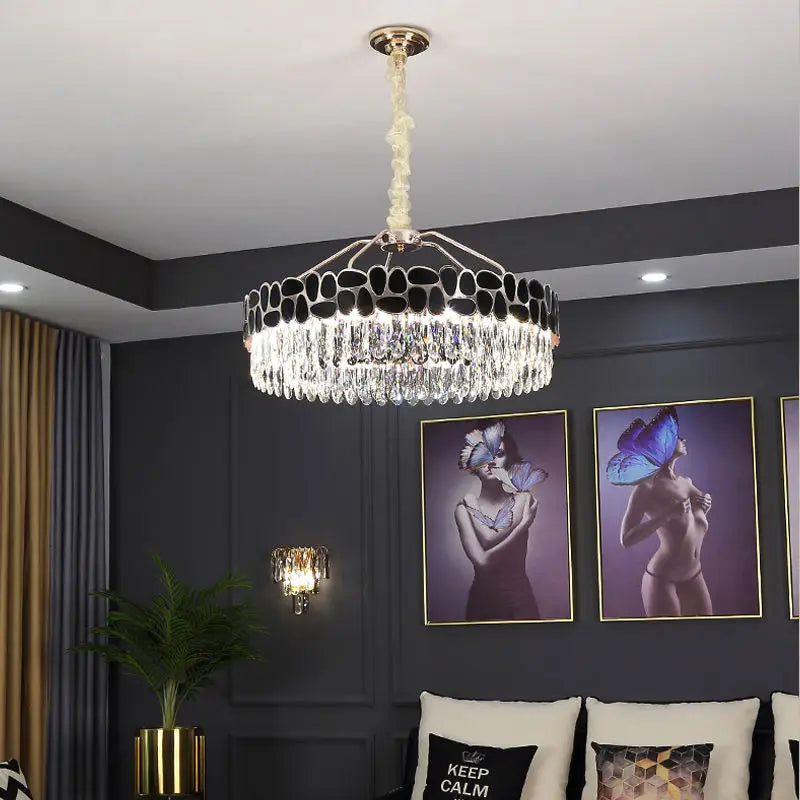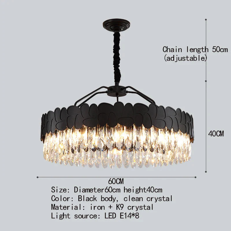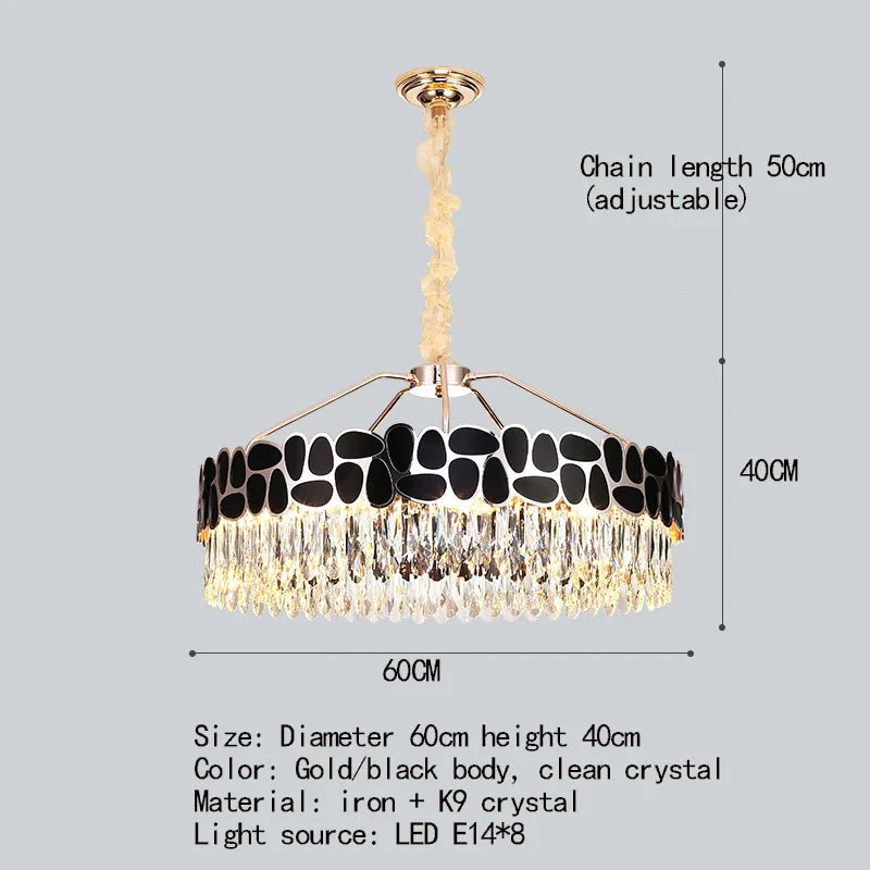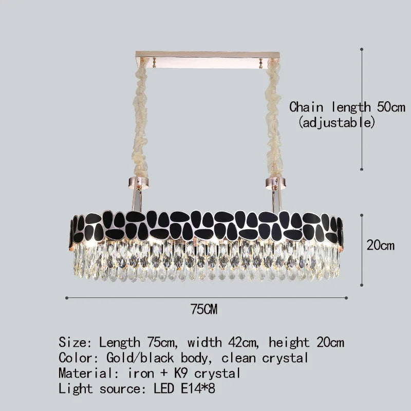 Nouveau design créatif noir/or hall chambre cristal rond lustre moderne rectangulaire salle à manger lustre en cristal brillant