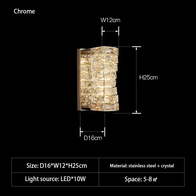 Chloe's - Applique murale à 3 couleurs de température en cristal K9 LED Applique murale d'intérieur chromée dorée pour salon/salle à manger/chambre à coucher Hôtel