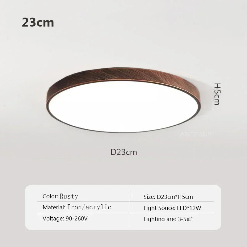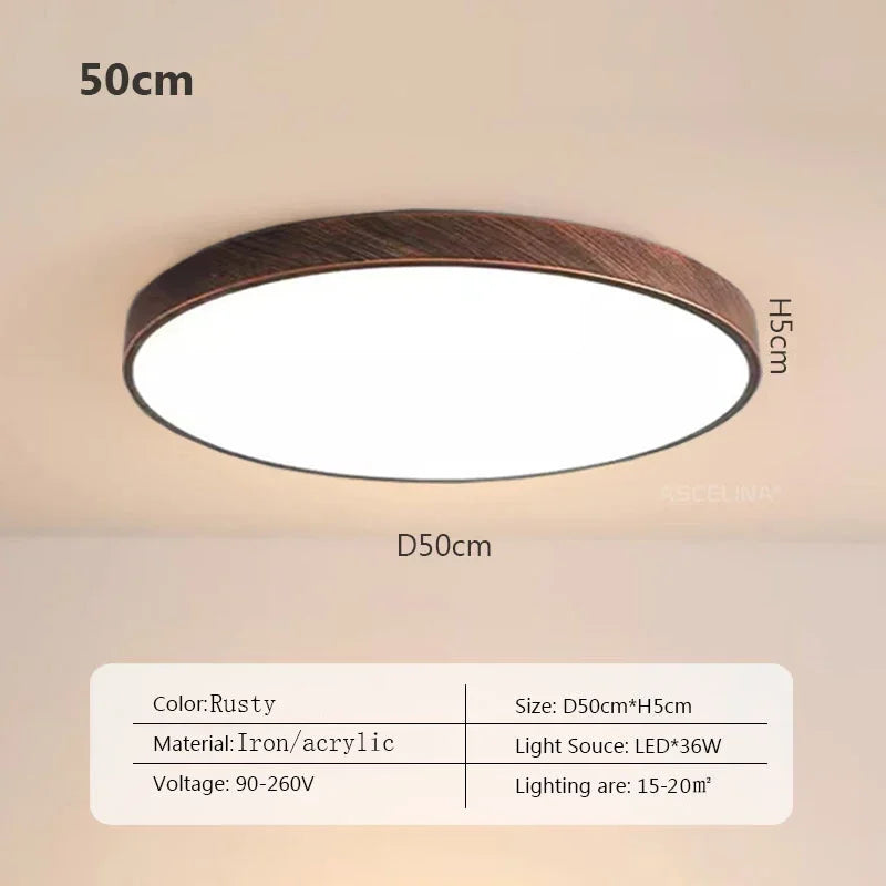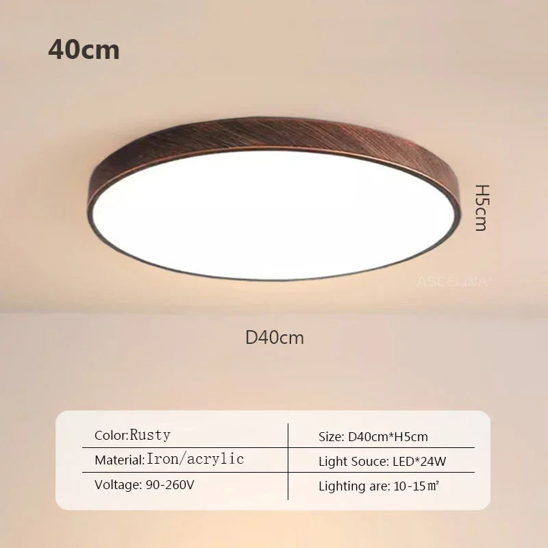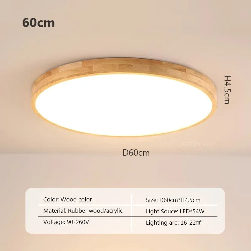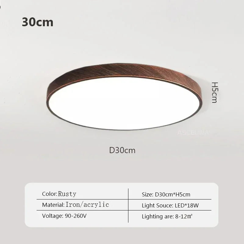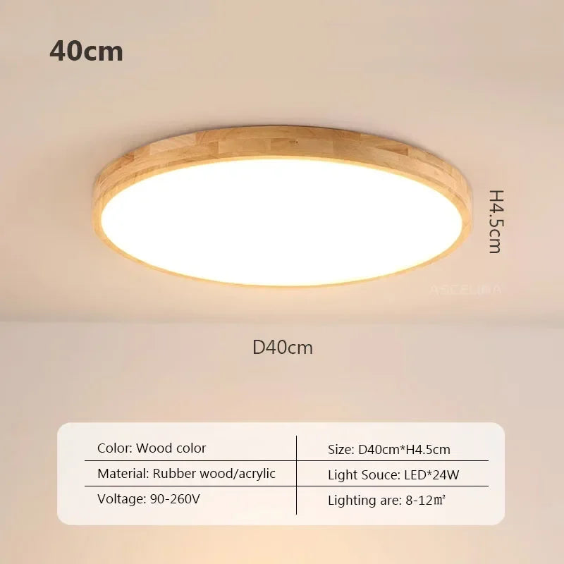 Plafonnier LED ultra fin - Lampe décorative nordique en bois - Idéal pour la chambre, le salon, le balcon et le couloir - Luminaire moderne en fer et acrylique