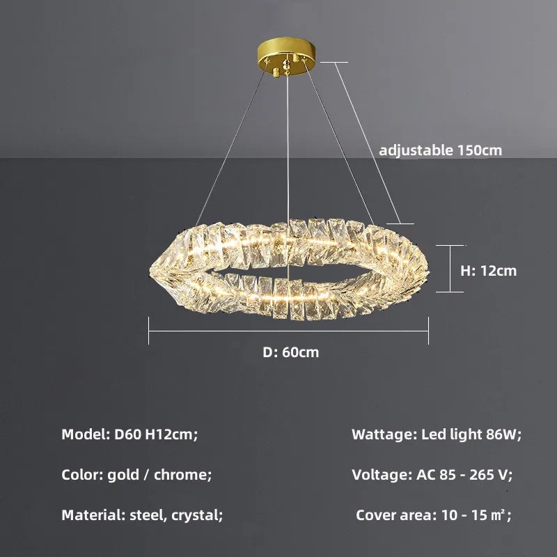 Lampes suspendues LED en cristal sophistiquées - À intensité variable, idéales pour les salons et les salles à manger - Design d'anneau luxueux