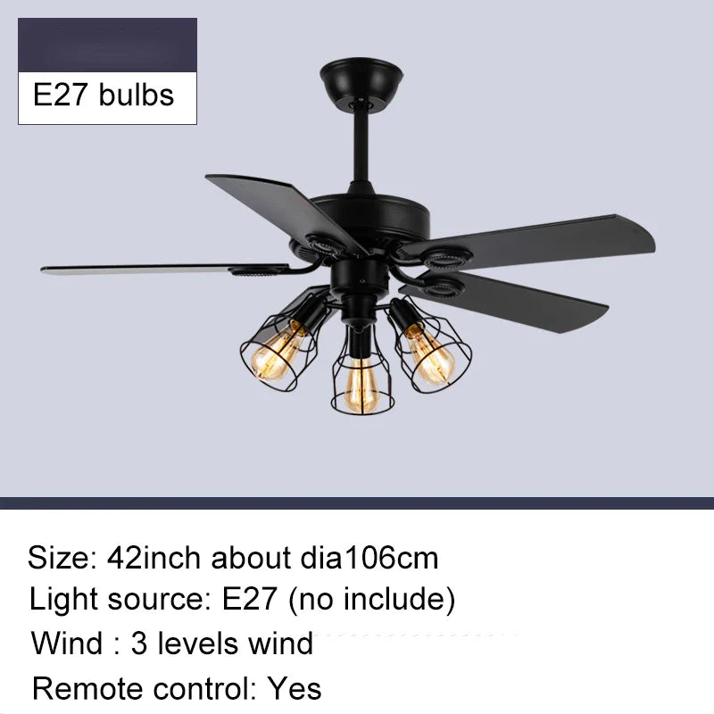 Black Ceiling Fans with Lights Remote Industrial Vintage Black Postmodern Fan lamp for Kitchen Island Dining Room Foyer Bar
