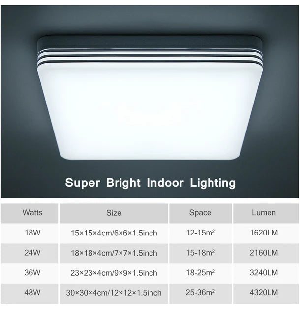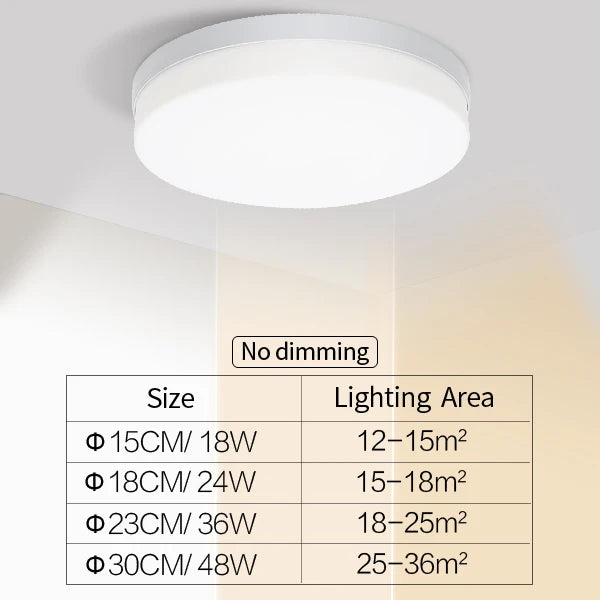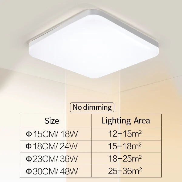 Illuminate your home with the Modern LED Ceiling Lamp, available in both round and square designs and a range of wattages (18W, 24W, 36W, 48W). This versatile ceiling light offers a choice of cold, warm, or natural light, allowing you to customize the ambiance of your living room or bedroom to suit any occasion.