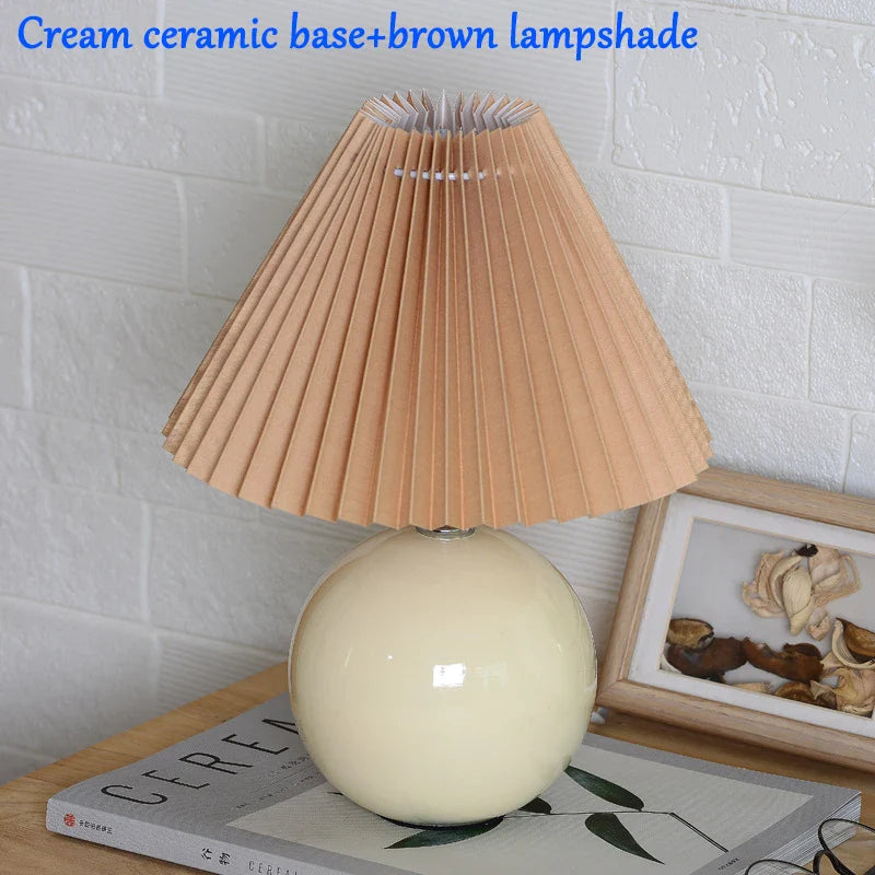 Introducing our Vintage Pleated Table Lamp, a delightful addition to your bedroom decor. This lamp features a ceramic base and includes an LED E27 tricolored bulb, adding both charm and functionality to your space. Its vintage design and compact size make it an excellent choice for creating a cozy ambiance.