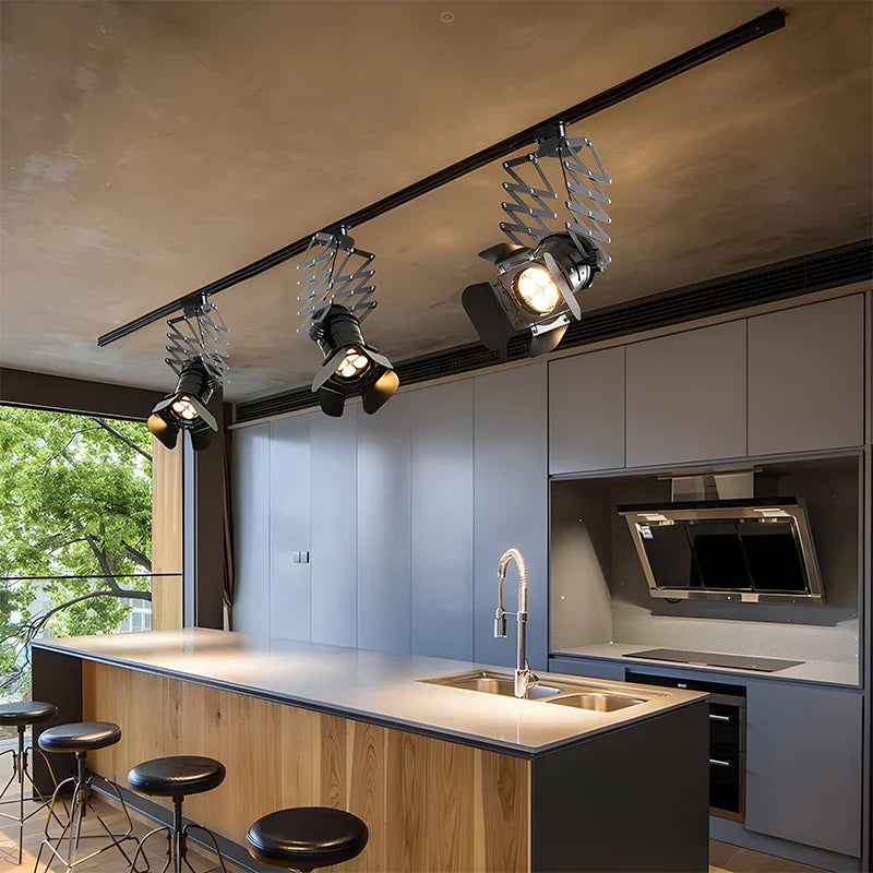 Vintage Track Lighting Fixture Rural Industrial Lift Ceiling Lamp Bar Clothing Retro Absorb Dome Light without E27 Bulb